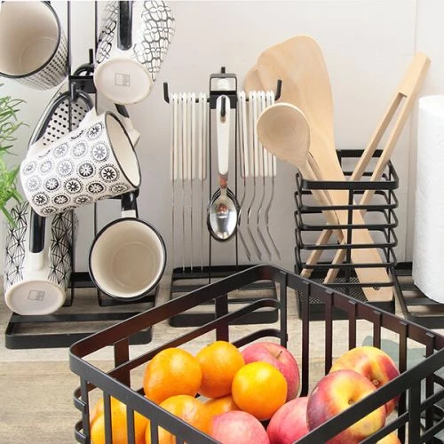 The stand included in the set is made from powder coated flat iron and looks great on display.