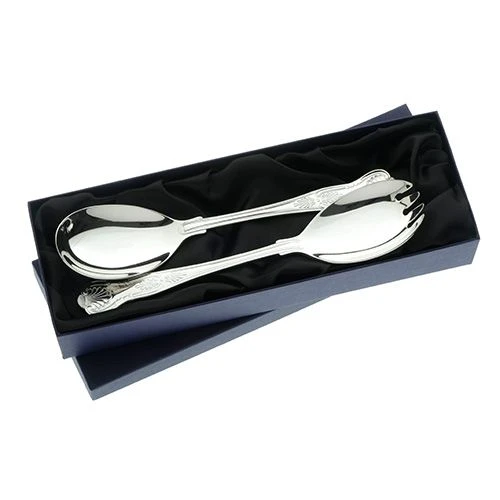 These Arthur Price of England Sovereign Silver Plate Salad Servers in the Kings pattern have a silver thickness of up to 40 microns. Unconditionally guaranteed for life and will offer a richness of patination, in time, that is beyond compare.