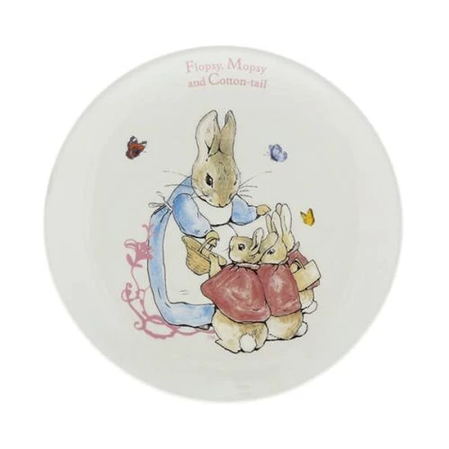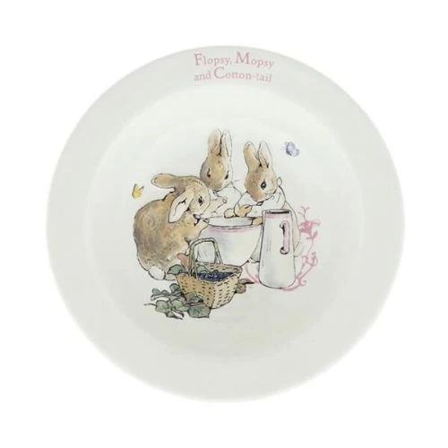 The Beatrix Potter Flopsy Mopsy and Cottontail 3 Piece Nursery Set features beautifully artwork from the original illustrations from the Beatrix Potter stories.