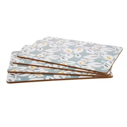 The set of 4 cork backed placemats are easy to clean with a simple wipe.