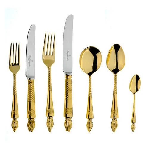 Made from high quality 18/10 stainless steel and featuring a 24 carat gold plated finish with elegant embossing for a luxury finish to your table setting for that very special occasion.
