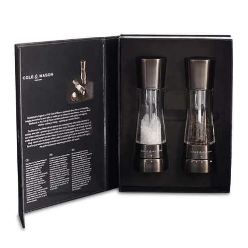 Cole & Mason Gourmet Precision Derwent Gun Metal Salt & Pepper Mill Gift Set comes beautifully presented in a gift box, an ideal present idea for keen cooks, new homeowners or a treat to yourself.