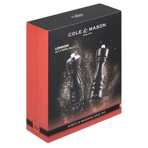 Season with confidence with the Cole & Mason London 18cm Black Gloss Gift Set. Comprising a salt and pepper mill and crafted from high grade beech wood finished in gloss with a stainless steel knob, these London mills are inspired by the beautiful, Art Deco and industrial British architecture that can be found throughout the city of London and honours both Cole & Mason’s heritage whilst looking to the future with their classic, yet contemporary aesthetic. Their timeless design would make a stylish addition to both modern and traditional kitchens.