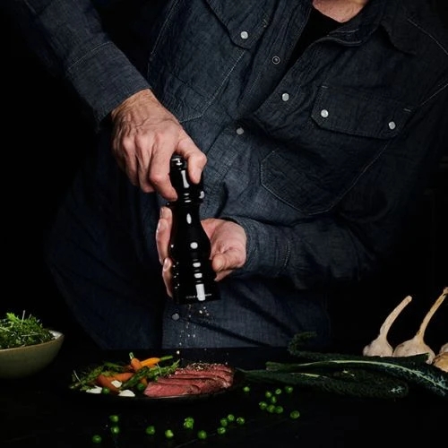 The grind can be easily adjusted from fine through to coarse simply by turning the knob on the top of the mill. Select a fine grind for a big punch in soups and sauces or select a coarser grind for a subtler, but longer lasting taste – great for steaks and salads. The sharp, anti-corrosive ceramic grinding mechanism of the salt mill achieves a high-quality output and consistent milling, time after time while the design registered, Precision+ carbon steel mechanism of the pepper mill, strips peppercorns instead of crushing them to ensure maximum flavour is released at every turn.