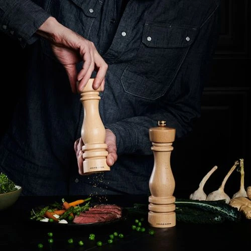 To complete the set, a matching Cole & Mason London 22cm Natural Beech Pepper Mill is available separately.
