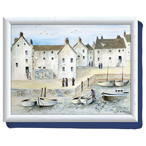 Perfect for meals in front of the TV or for working on your laptop, this laptray captures the delights of a traditional Cornish harbour scene – boats, gulls and old coastal buildings all feature in this seaside scene captured in a palette of soft creams, blues and whites.