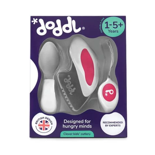 Designed for toddlers and young children, this Doddl 3-piece cutlery set in Magenta features 1 x spoon, 1 x knife and 1 x fork.