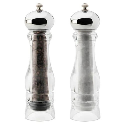 Each mill has a clear acrylic body alongside sleek, chrome plated tops.
