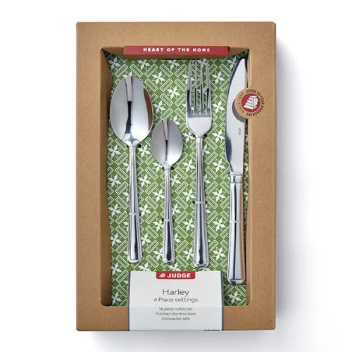 This Judge Harley 16 Piece Cutlery Set includes 4 table knives, 4 table forks, 4 dessert spoons and 4 teaspoons.