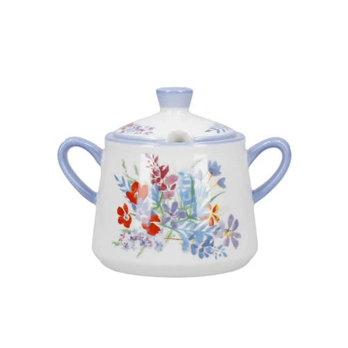 Made from delicate, yet durable ceramic, this sugar bowl is decorated with beautiful wildflowers, inspired by Birch’s love of the untouched, wildflower-dotted meadows of rural Transylvania. Lovely red, blue, lavender and gold flowers burst with vibrancy and life and bring a spring-like bounce to this beautiful sugar pot which is enhanced further by accents of soft cornflower blue.