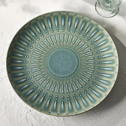 The intricate designs on the Green Charger Plate are fluent throughout the dinnerware and fit the earthy, natural aesthetic of the Royal Botanic Gardens Kew range.