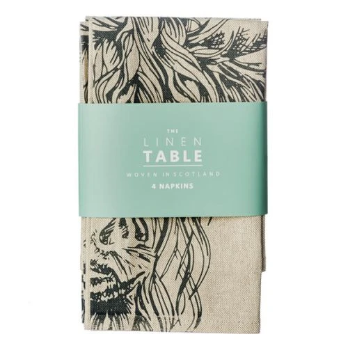 Napkin dimensions: 40cm x 40cm. Material: 50% cotton/50% linen. Linen is made from flax – a renewable and sustainable resource. It has antibacterial properties, is extremely durable and strong and wicks moisture, so is faster drying. These napkins are woven in the last remaining linen mill in Scotland, using traditional techniques.