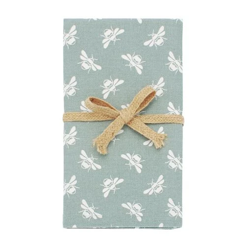 This Walton & Co set of 4 bee napkins feature a white bee print on a moss green background.