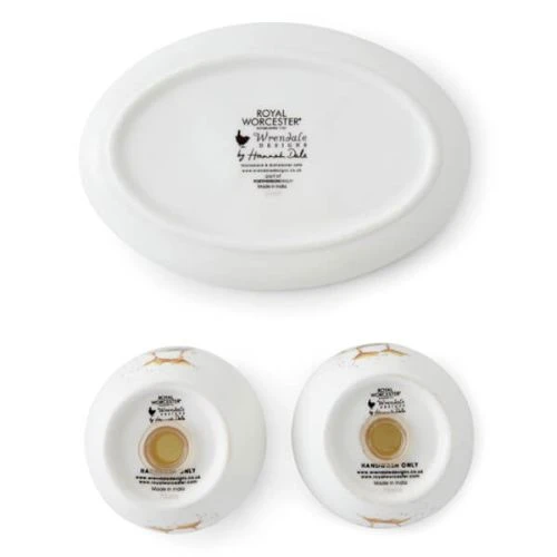 Crafted from fine bone china, these Wrendale Salt & Pepper Pots with Tray are both microwave and dishwasher safe.