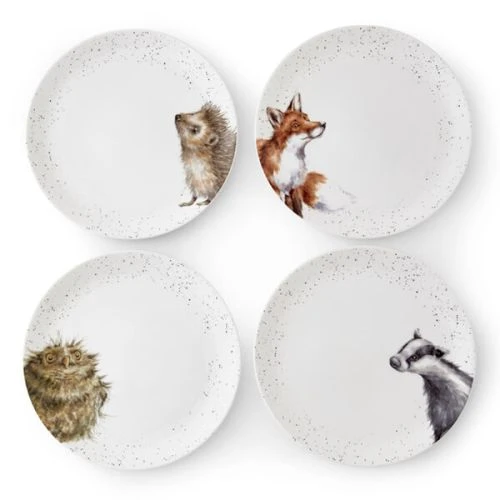 Wrendale Designs Set Of 4 Coupe Plates, 27cm (Badger, Hedgehog, Fox & Owl)
